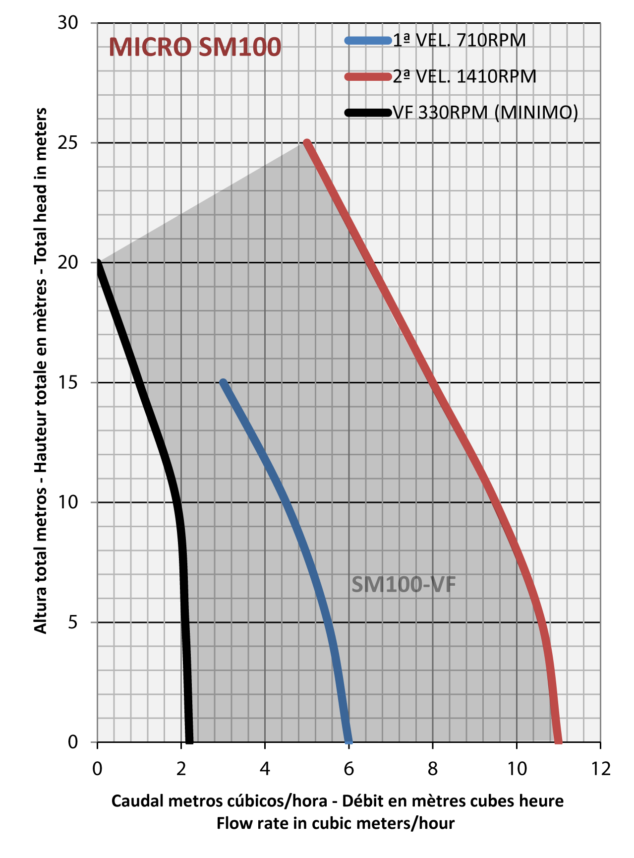 Disponible en una (1,1 kW) o dues velocitats (1,1/0,55 kW) i velocitat regulable amb variador IP-54 (1,3 kW).